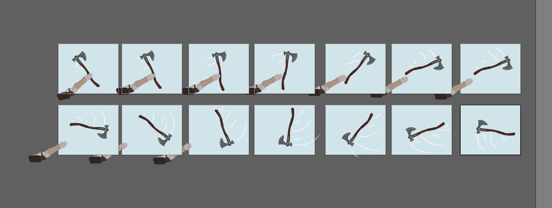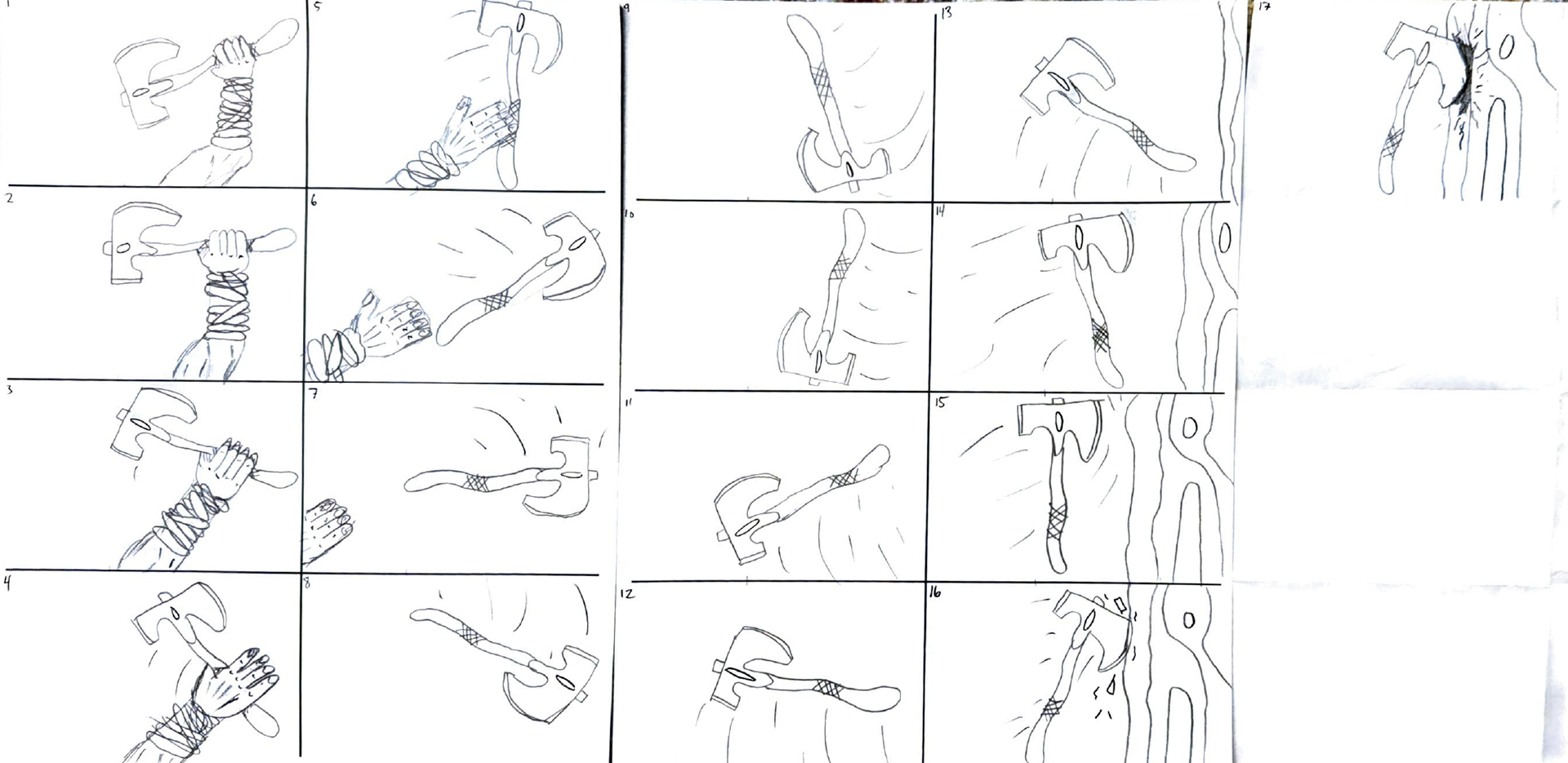 I thought the concept of an axe being thrown and pulled back fit the medium of a GIF, since it allows for a continuous loop. The white streaks add a sense of motion and convey that the axe is spinning through the air. I positioned the axe and manually drew the streaks for each frame.