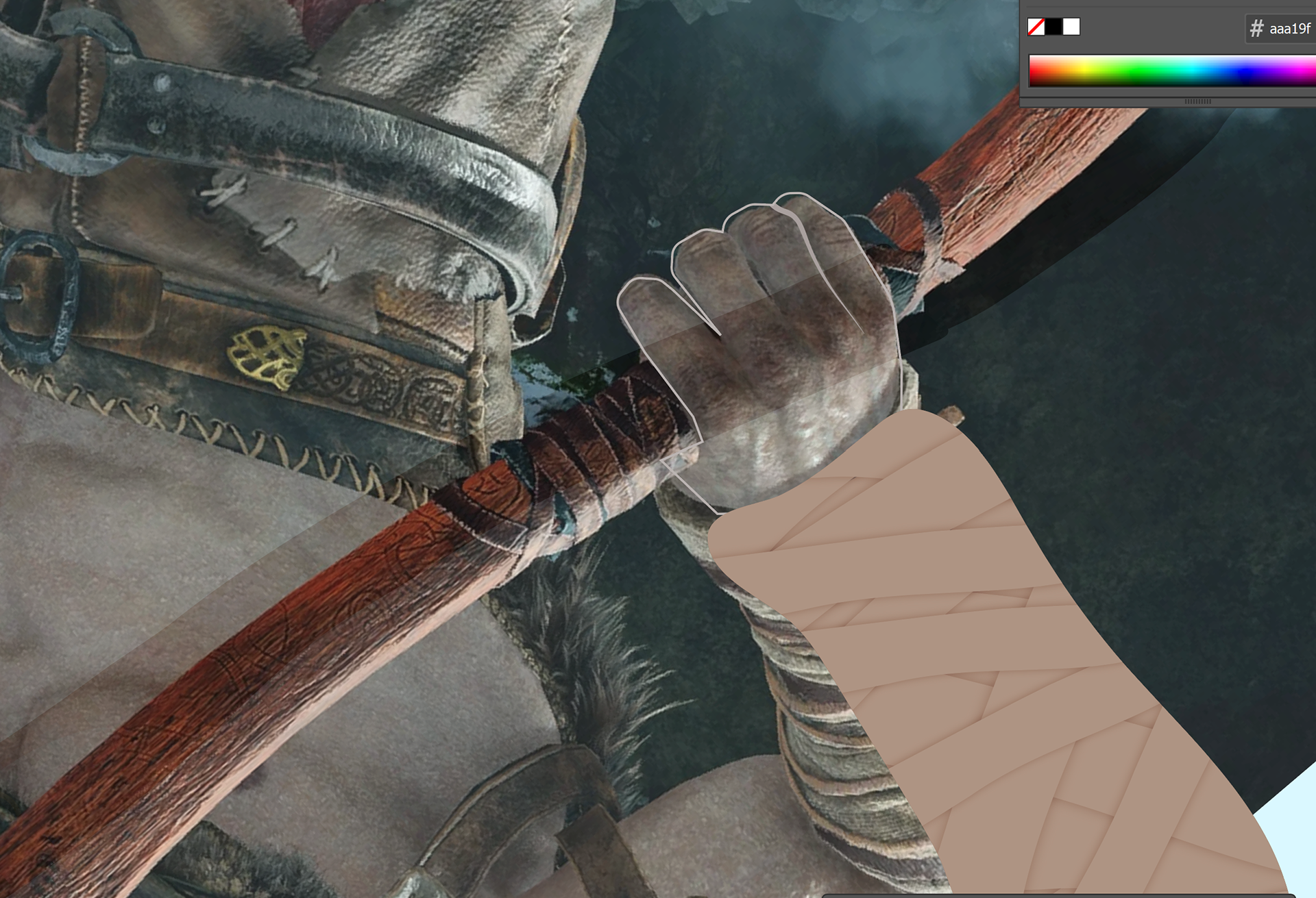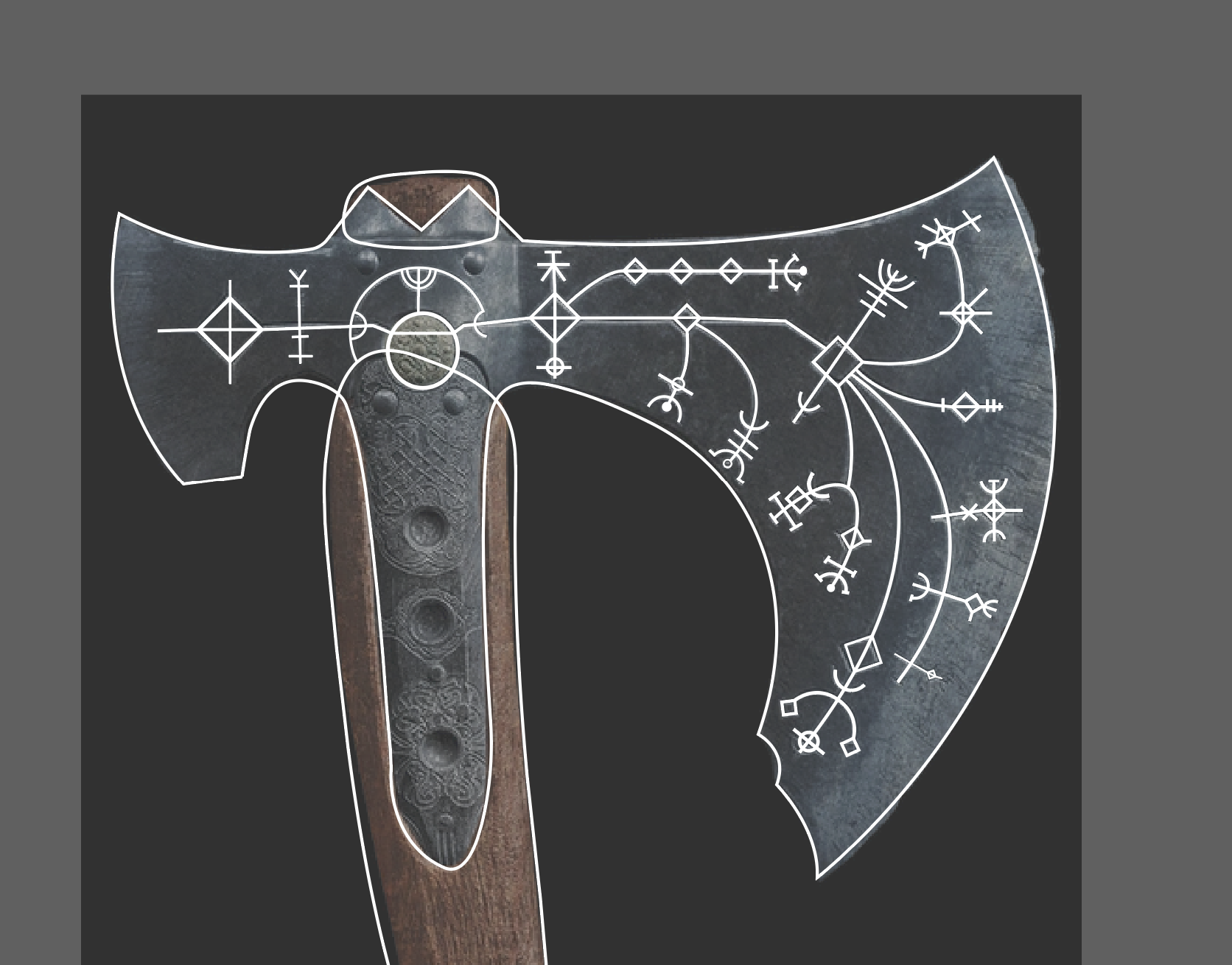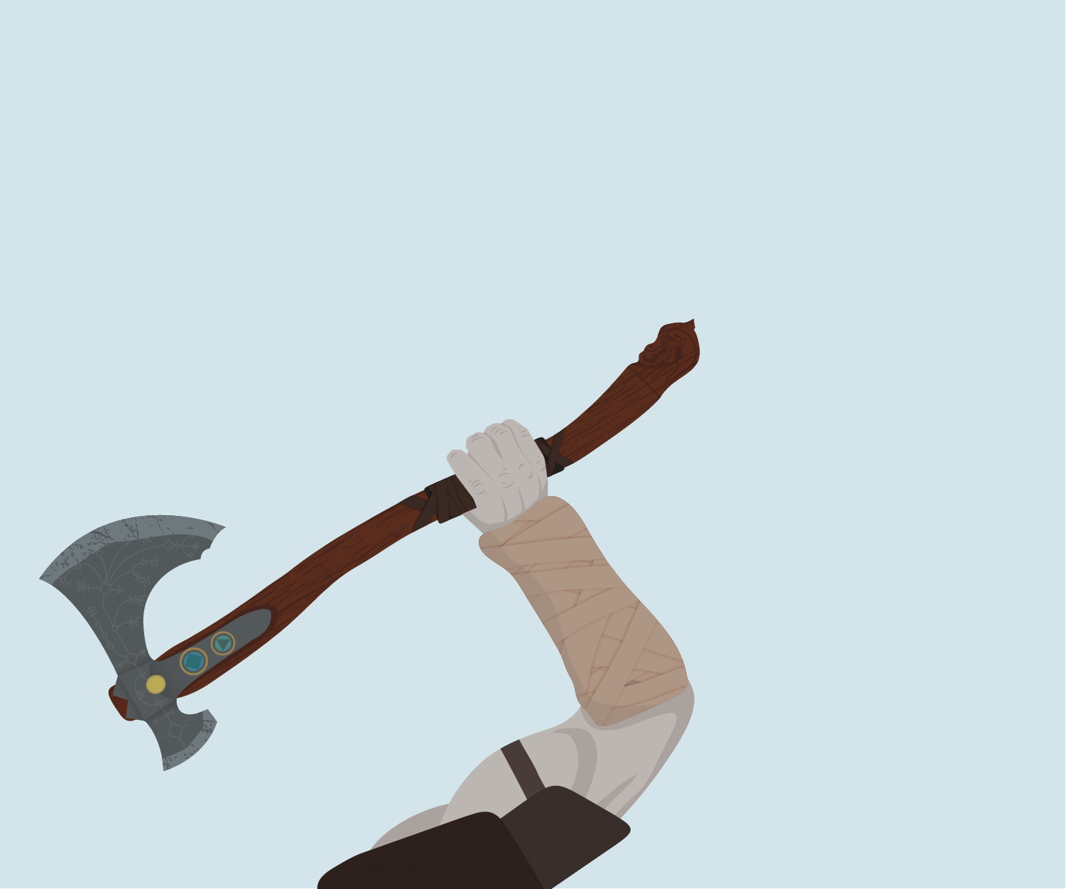This GIF is based on the mythical Leviathan Axe from the video game, God of War (2018). The GIF depicts the arm of the demigod, Kratos, throwing the axe into a tree. The runes in the axe glow as it is magically summoned back.