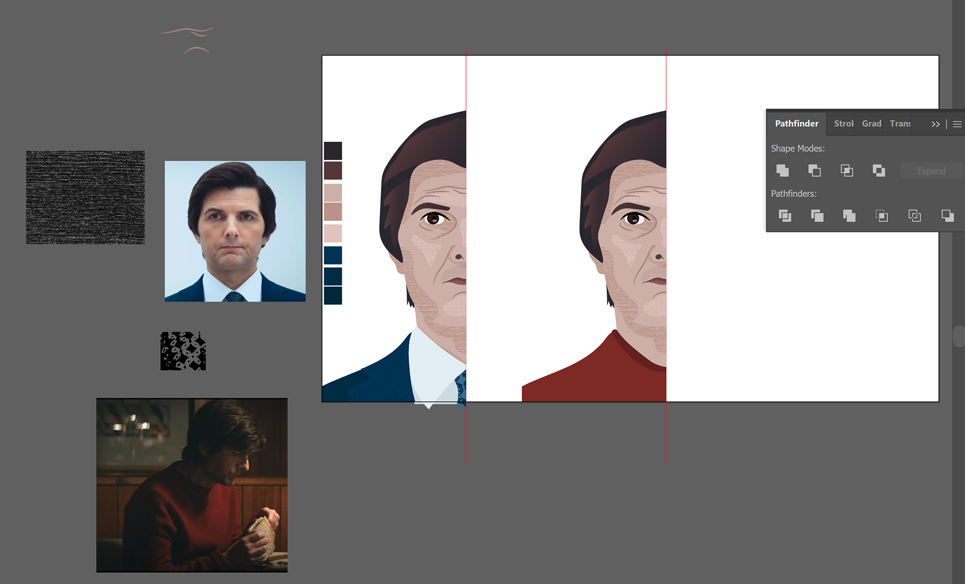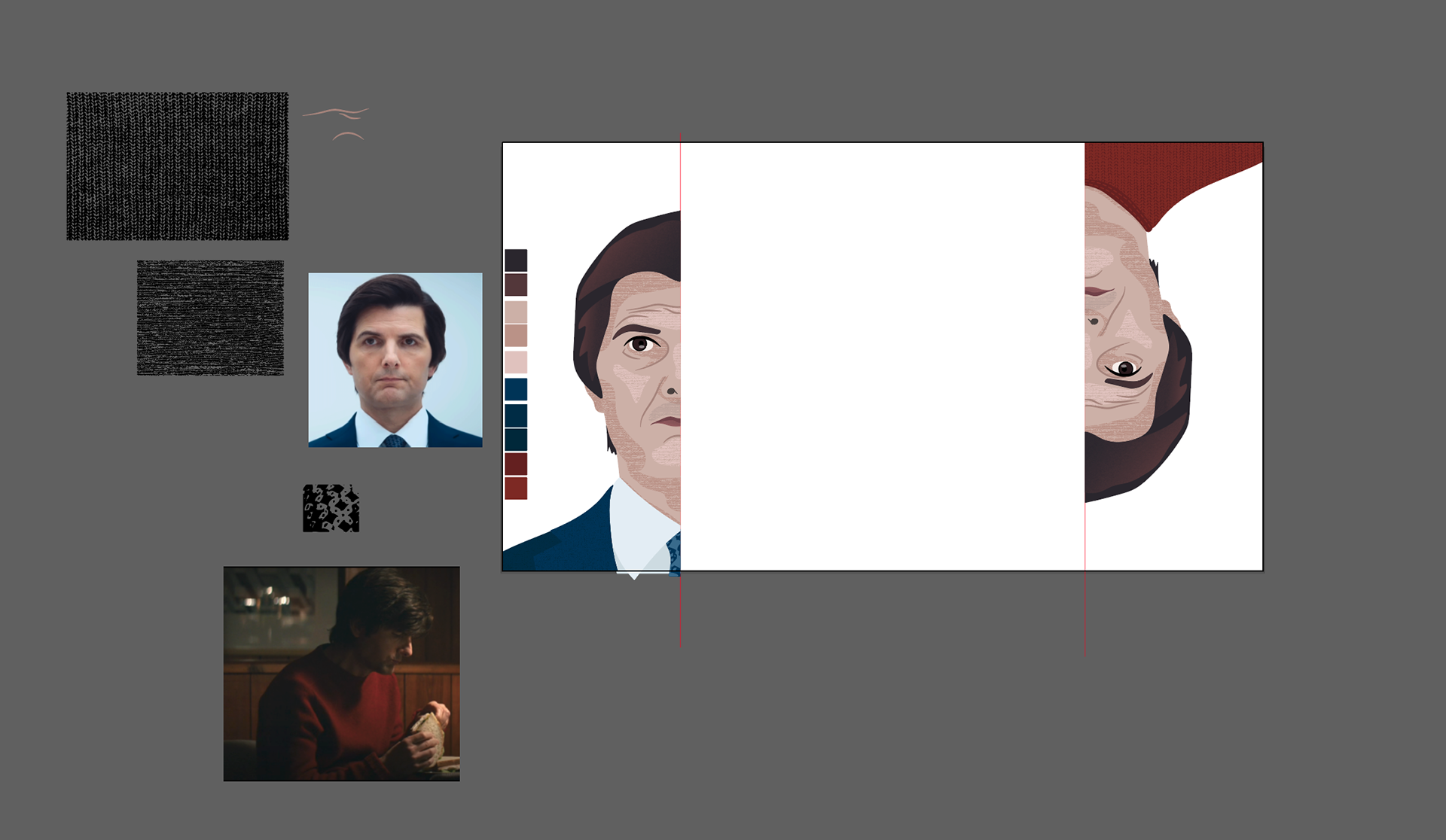 Throughout the illustration, I made use of a variety of textures to add depth and style. I wanted my art to convey a similar mysterious and trippy feeling that the TV series evokes. The final illustration can be viewed in any orientation, just as Mark and his mind can be seen and interpreted in multiple ways.