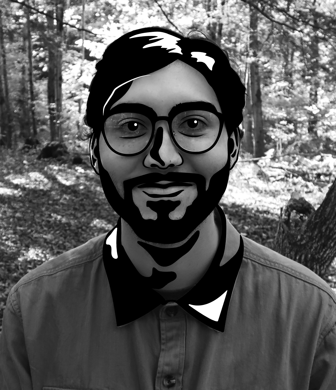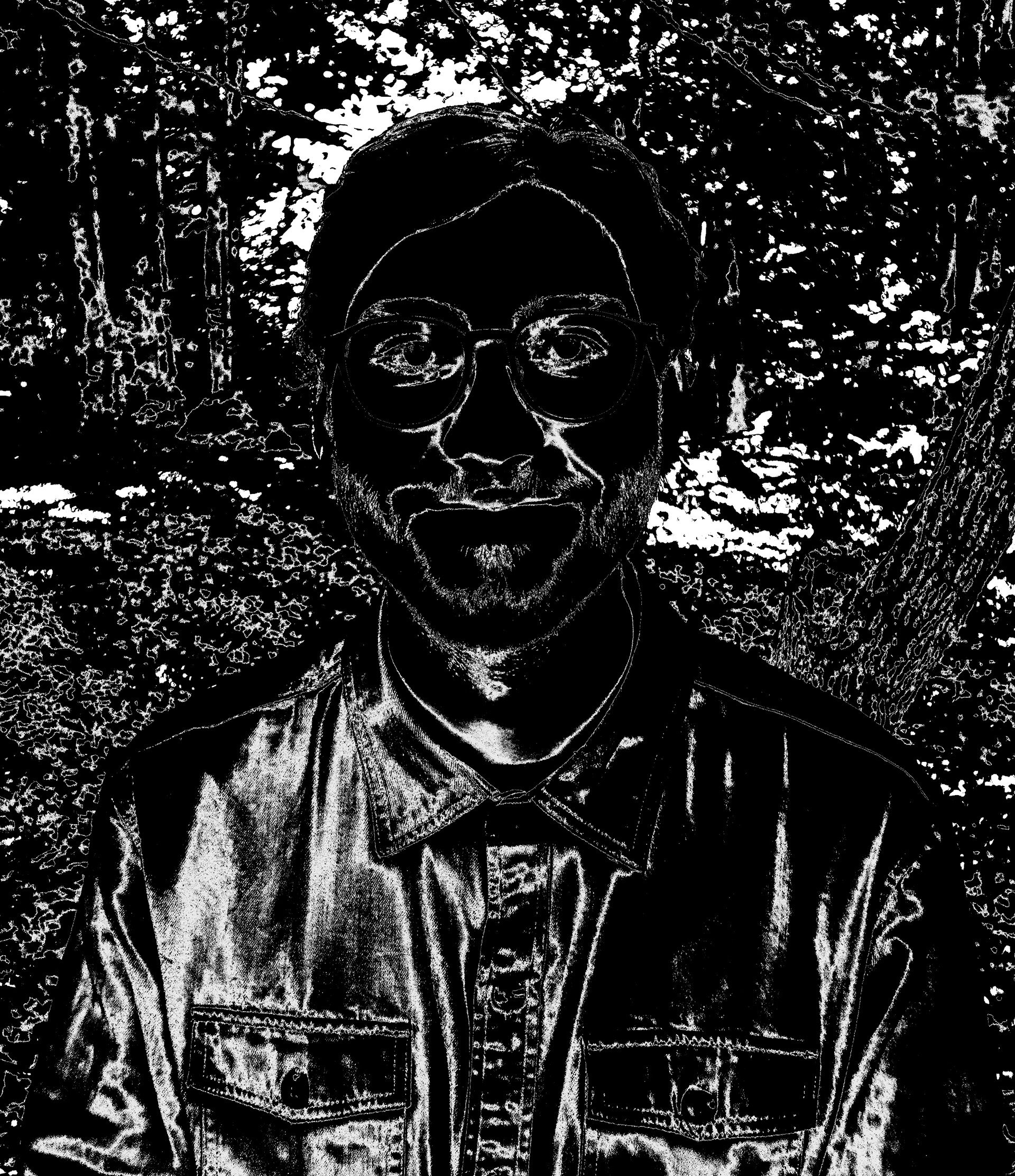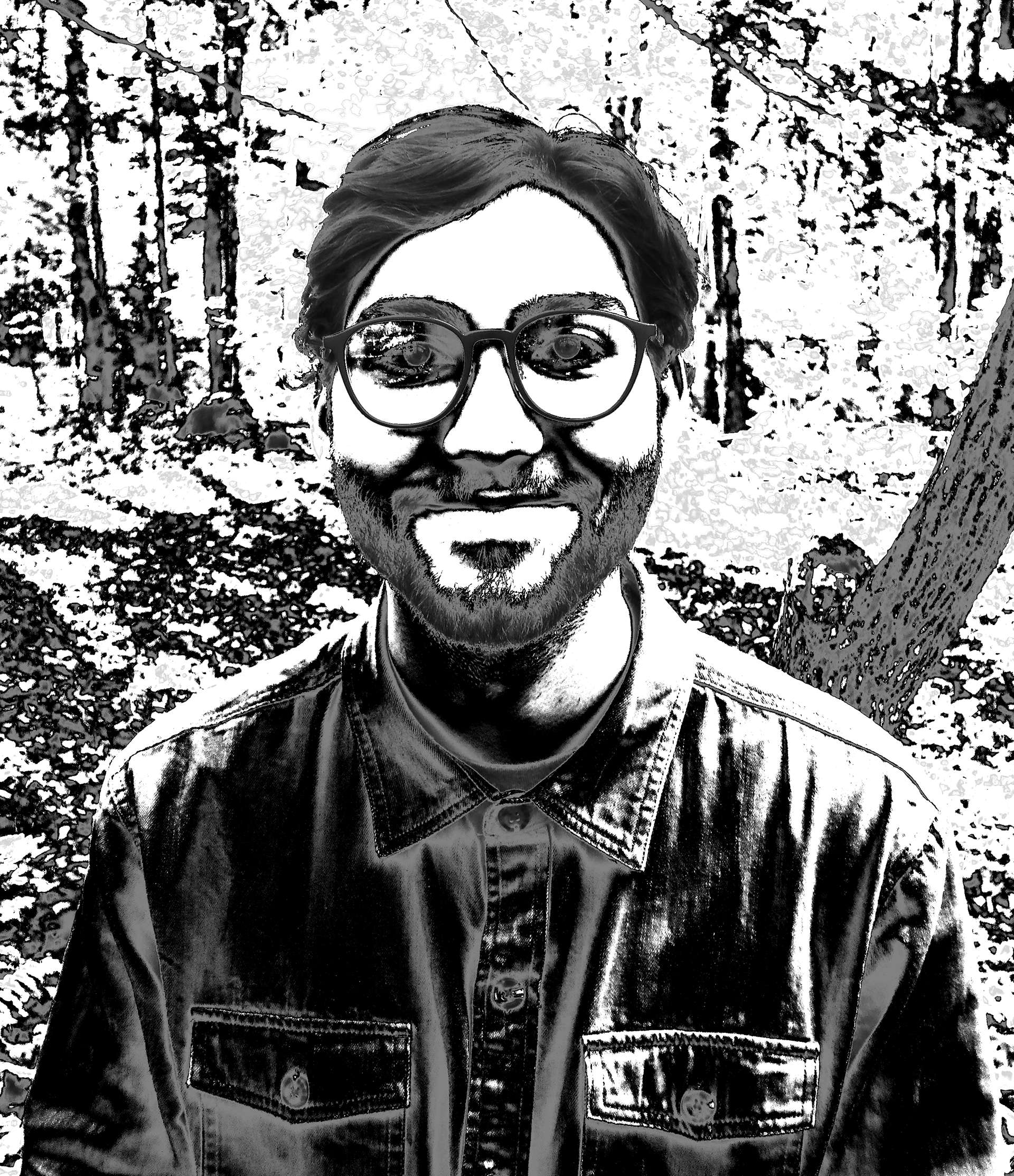 When creating this project, I aimed to capture my likeness by emphasizing my most recognizable features. By manipulating the levels and curves in Photoshop, I identified that my hair, glasses, and beard stood out the most. These elements were accentuated with contrast, with the key characteristics being the darkest to draw attention. Shadows were then added to convey a sense of depth.