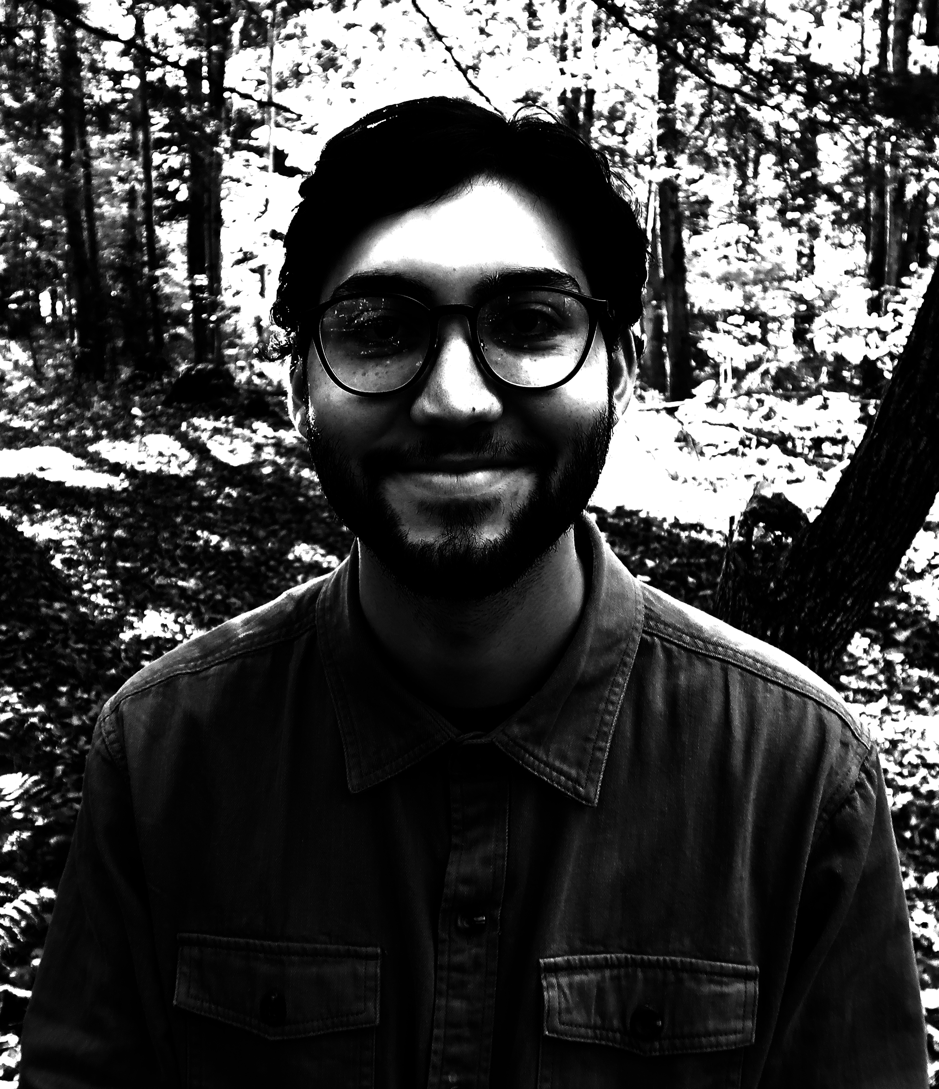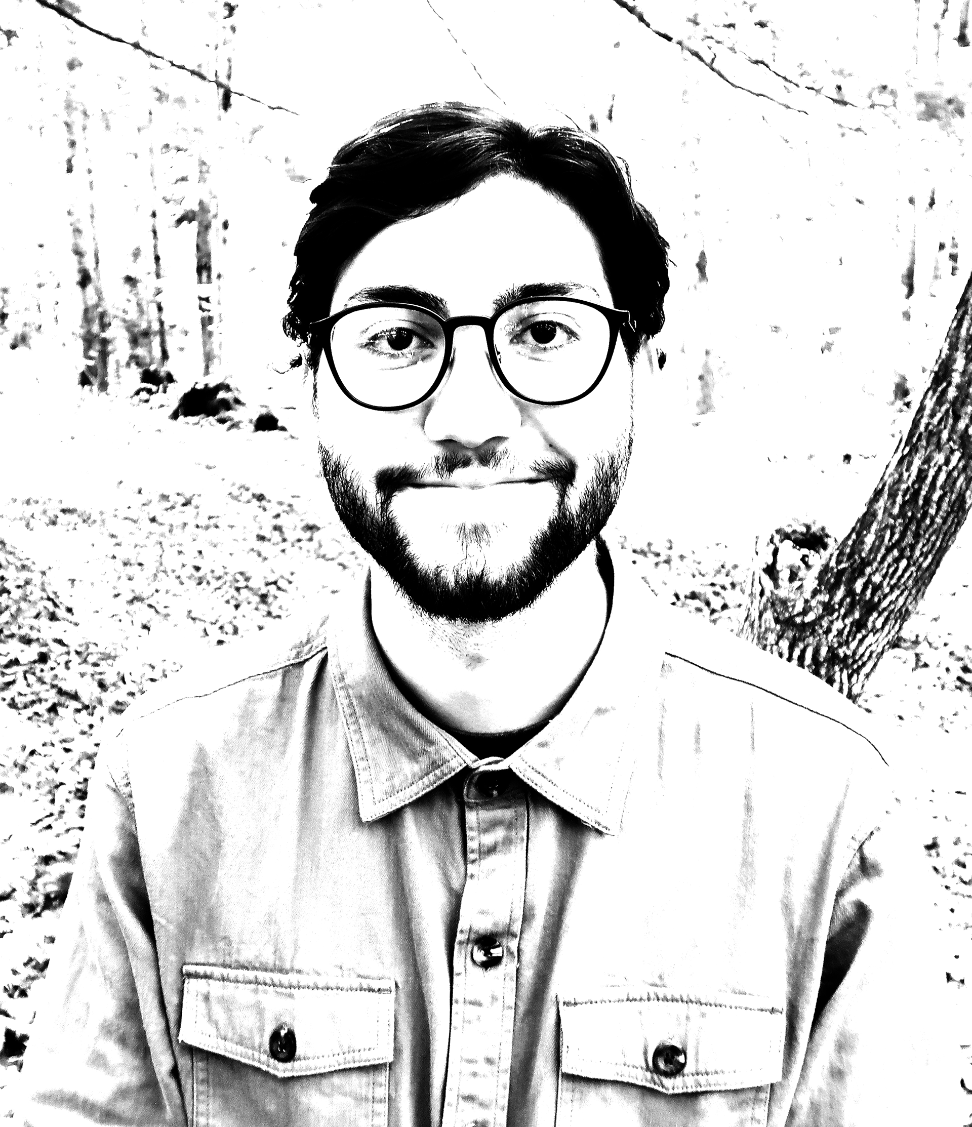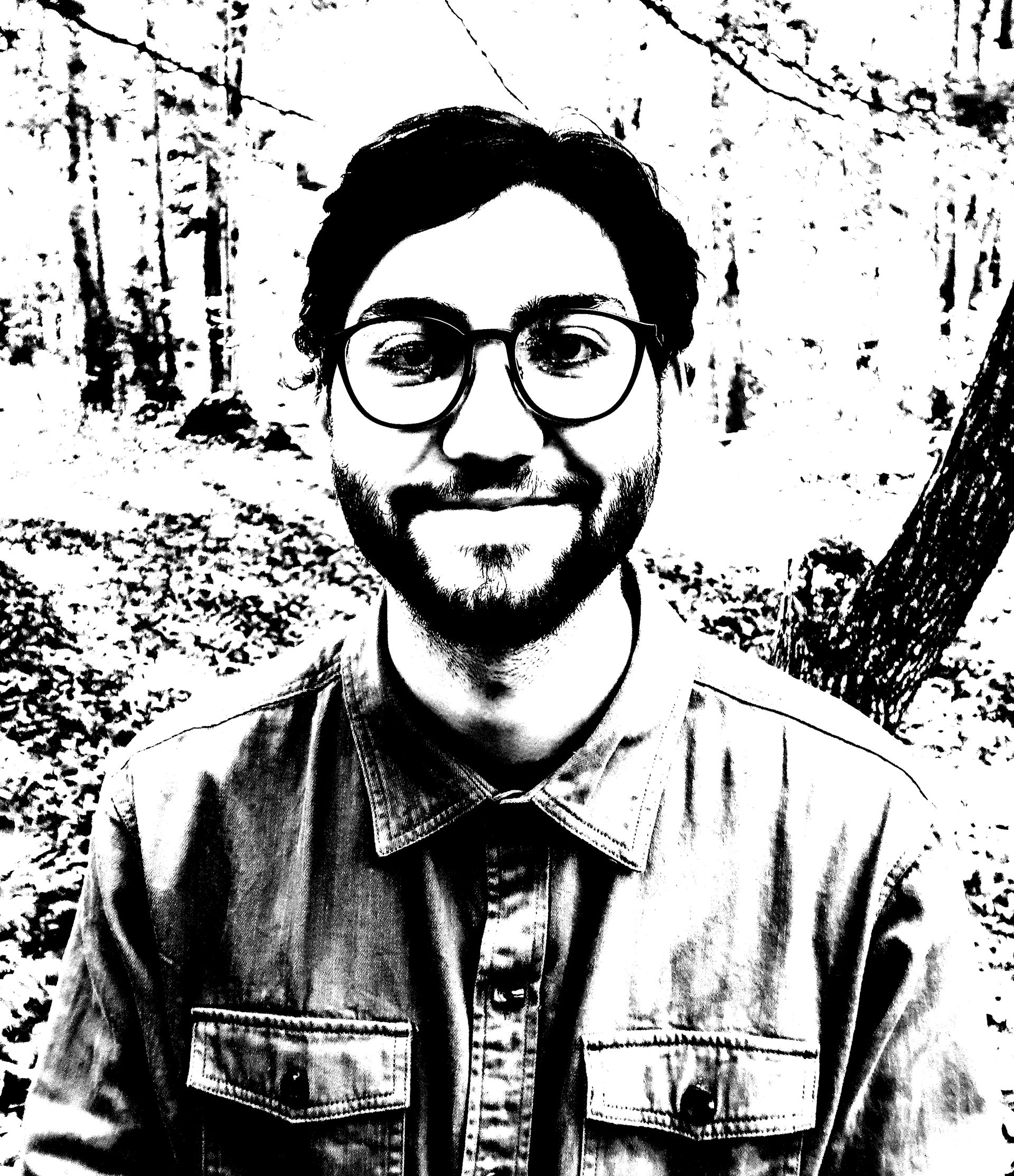 When creating this project, I aimed to capture my likeness by emphasizing my most recognizable features. By manipulating the levels and curves in Photoshop, I identified that my hair, glasses, and beard stood out the most. These elements were accentuated with contrast, with the key characteristics being the darkest to draw attention. Shadows were then added to convey a sense of depth.